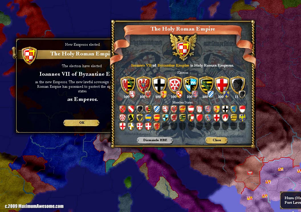 The HRE Emperorship turned out to be a colossal pain in the ass. Suddenly, I was called into all these pointless little Euro-skirmishes that I’d intended to avoid in the first place. No matter what I did, my relations with the HRE Electors tanked. If I responded to the HRE member’s call for aid, the Electors hated me. If I ignored it and let the minor states slug it out, the Electors hated me. Soon enough, the title of Holy Roman Emperor was placed in a new pair of hands far away from mine. “People,” I said in my annual State of the Empire address, “fuck it, who cares.” It was my best received speech to date.